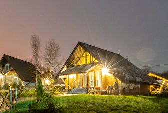 На территории Гостевого комплекса располагаются отдельно стоящие коттеджи в стиле Шале, рассчитаны на проживание до 4 гостей. Дизайн коттеджей- авторский.