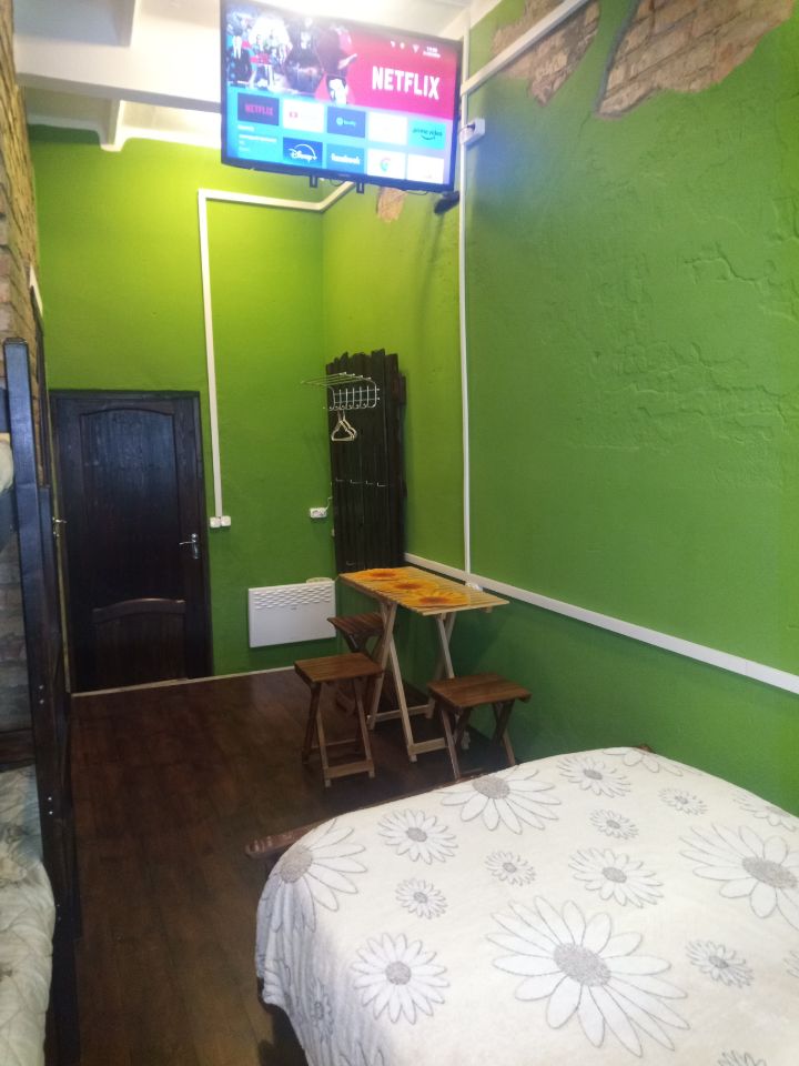 В каждой комнате находится двуспальная кровать и двухъярусная кровать, большой смарт ТВ, стол, стулья, отдельная ванная комната с туалетом, ванной, душем и раковиной, а также всем необходимым для проживания. Большой холодильник, микроволновка, кулер, чайник, чай/кофе в общем доступе. Высокие потолки (3,5 метра).