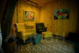 Кедровый дом - Октябрьский. Лаконичный коридор с мини-гардеробом для размещения багажа. Санузел с теплым полом, ванной и туалетом, раковина с большим зеркалом и полноценным техническим оснащением (эл. бойлер, фен, весы). Просторная гостиная с панорамным видом на территорию. В этой лаундж зоне предусмотрен приглушенный свет и подборка классической и современной литературы. Особую атмосферу каждому домику создают оригиналы картин известных художников. На втором этаже расположилась просторная мастер-спальня, оформленная в стиле практичного минимализма: двуспальная кровать из массива сибирского кедра 160*200 см, кедровые прикроватные тумбы - пни с соляными светильниками и аутентичные коврики. Панорамное окно прямо в спальне на 2ом этаже с видом на реликтовый лес и территорию бутик-отеля придает особый шарм. Утром можно проснуться под пение птиц. Во второй спальне 2 полуторные кровати из массива сибирского кедра 90/120*200 см, кедровые тумбы - пни с соляными светильниками, аутентичные коврики.