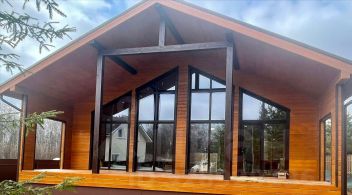 Комнаты каждого из коттеджей оснащены мягкой и удобной мебелью, в вашем распоряжении спутниковое телевидение и доступ в интернет (Wi-Fi). Также в каждом домике есть терраса с прекрасным видом на сосновый и березовый лес, наполняющими душу умиротворенностью и чувством гармонии с окружающим миром. Помимо жилых помещений, в каждом доме предусмотрена кухонная зона: современная техника позволит при необходимости приготовить пищу в любое время суток.
