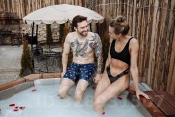 В распоряжении гостей уникальные дизайнерские коттеджи не имеющие аналогов на территории Тульской области, с собственной просторной территорией. В коттеджах имеется все для проживания: спальни + гостиная совмещенная с кухонной зоной. В доме, чтобы гости могли отдохнуть после долгого дня, есть телевизор, халат, сплит - система.