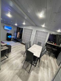 В коттедже имеется все для проживания и даже больше! Две спальни + гостиная совмещенная с кухонной зоной. Собственная финская сауна с панорамным окном (включена в стоимость проживания) и Чаном (оплачивается отдельно) на улице. Мангальная зона. ТВ, бумбокс, караоке и многое многое другое!