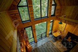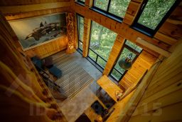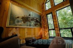 Кедровый дом - Морской. 1 этаж: лаконичный коридор с мини-гардеробом для размещения багажа; санузел с теплым полом, ванной и туалетом, раковина с большим зеркалом и полноценным техническим оснащением (эл. бойлер, фен, весы); просторная гостиная с панорамным видом на территорию. В этой лаундж зоне предусмотрен приглушенный свет и подборка классической и современной литературы. Особую атмосферу каждому домику создают оригиналы картин известных художников. На втором этаже расположилась просторная мастер-спальня, оформленная в стиле практичного минимализма: двуспальная кровать из массива сибирского кедра 160*200 см, кедровые прикроватные тумбы - пни с соляными светильниками и аутентичные коврики. Панорамное окно прямо в спальне на 2ом этаже с видом на реликтовый лес и территорию бутик-отеля придает особый шарм. Утром можно проснуться под пение птиц.