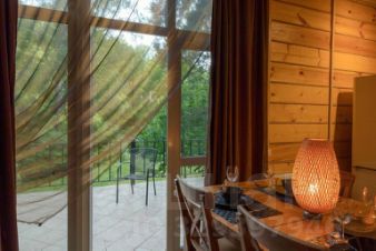 Комнаты каждого из коттеджей оснащены мягкой и удобной мебелью, в вашем распоряжении спутниковое телевидение и доступ в интернет (Wi-Fi). Также в каждом домике есть терраса с прекрасным видом на сосновый и березовый лес, наполняющими душу умиротворенностью и чувством гармонии с окружающим миром. Помимо жилых помещений, в каждом доме предусмотрена кухонная зона: современная техника позволит при необходимости приготовить пищу в любое время суток.