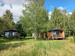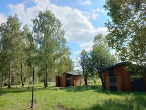 На участке 2,45 Га, премыкающем к водоему в березовой роще распологаются каркасные дома-барн 60 кв.м, с 1 и 2 спальнями, отделка имитация бруса, металлопрофиль антрацит, окна Рехау, утеплитель каменная вата 150-200 мм, потолки от 3 м. :В 2 х за- идет внутренняя отделка , 2 собран каркас (материалы есть), 1 сделан фундамент свайно винтовой.