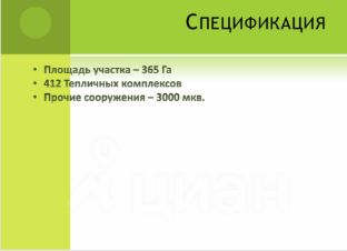 Арт. 101187559 Продаётся комплекс земельных участков под проект развития тепличного хозяйства