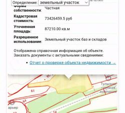 Арт. 111922536 Очень низкая цена!! Кадастровая стоимость 73 мил. Срочная продажа!!! Можно использовать для инвестиций. Не фейк, все реально!! Земли промышленности, энергетики, транспорта, связи, радиовещания, телевидения, информатики, земли для обеспечения космической деятельности, земли обороны, безопасности и иного специального назначения. Назначение базы и склады. Подъезд по хорошей асфальтовой дороге от Тулы 75 км. ЖД ветка с тупиком, станция Горбачево в 1,2 км. электричество любой мощности и газ по границе участка, законсервированы две артезианские скважины 90 и 130 метров. На участке старое кирпичное здание бывшей котельной 211 КВ м, большое колличество свала чернозёма, много вторичного щебня для начала строительства. Рядом находится песчаный карьер и действующее грибное производство. Один собственник физ. лицо более 5 лет, документы в норме, быстрый выход на сделку. Арт. 107140044