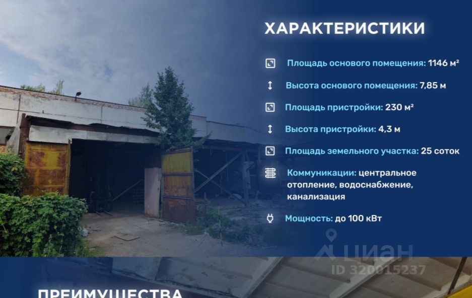 Объект отлично подойдёт под тяжёлое оборудование — в здании установлена кран-балка, предусмотрено центральное отопление и мощность до 100 кВт.