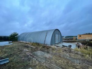 Продается бескаркасный арочный ангар площадью 460 м2. Не утепленный. Основной материал - рулонная сталь 1 класса, конструкция торцевых стен - профилированная рулонная сталь. Пол бетонный. Ворота одни, распашного типа. Ангар находится в д. Азаровка Тульской области. К участку подведено электричество, 800 киловатт, что покрывает потребности большинства производств. Также на объекте имеется бытовка, которую можно приспособить под самые разные цели.