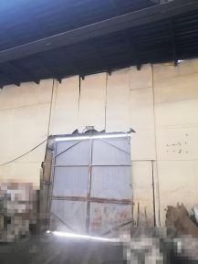 - помещение 1290 кв.м. (30х43), высота полков 5-7 м, до ферм 4 м. Въездные ворота (3 шт) h=3.8 м, полы - бетон