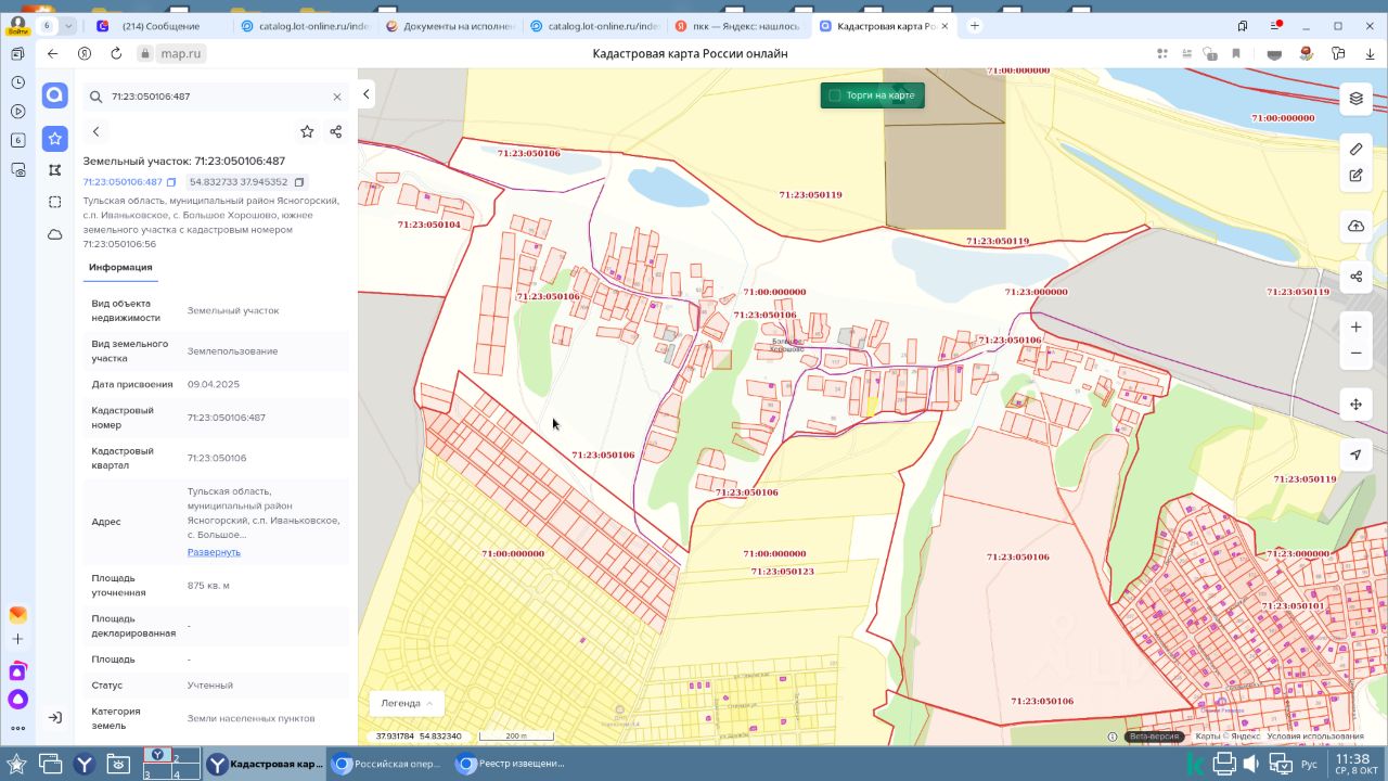 продажа земельного участка из земель населенных пунктов с кадастровым номером 71:23:050106:487, площадь 875 кв. м, адрес: Тульская область, муниципальный район Ясногорский, с.п. Иваньковское, с. Большое Хорошово, южнее земельного участка с кадастровым номером 71:23:050106:56, вид разрешенного использования: для ведения личного подсобного хозяйства.