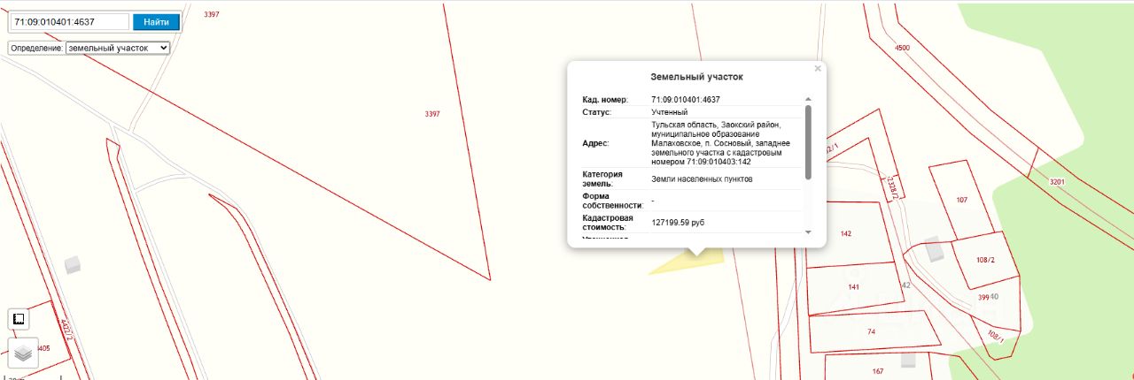 продажа земельного участка из земель населенных пунктов с кадастровым номером 71:09:010401:4637, площадь 301 кв. м, адрес: Тульская область, Заокский район, муниципальное образование Малаховское, п. Сосновый, западнее земельного участка с кадастровым номером 71:09:010403:142, вид разрешенного использования: для ведения личного подсобного хозяйства