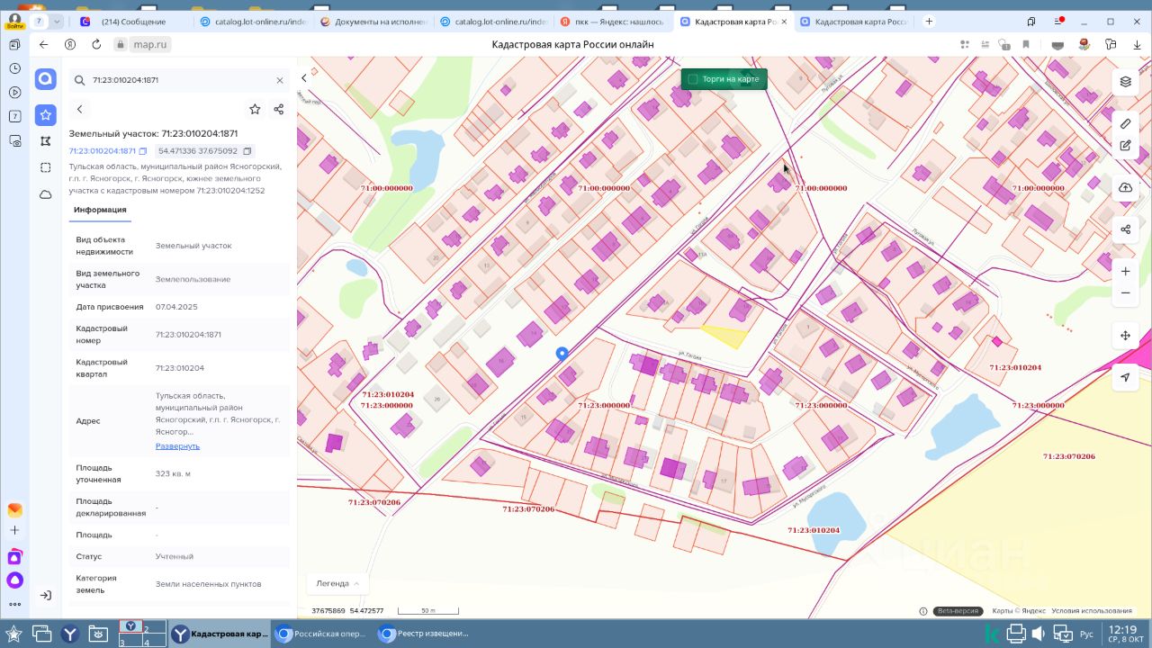 продажа земельного участка из земель населенных пунктов с кадастровым номером 71:23:010204:1871, площадь 323 кв. м, адрес: Тульская область, муниципальный район Ясногорский, г.п. г. Ясногорск, г. Ясногорск, южнее земельного участка с кадастровым номером 71:23:010204:125, вид разрешенного использования: для индивидуального жилищного строительства