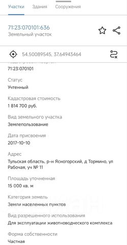 1га земли населенных пунктов со строениями (ангар, коровник, хоз здания)