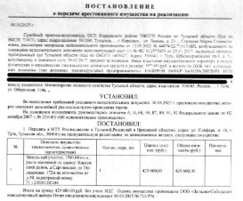 Земельный участок, категория земель: земли населенных пунктов, виды разрешенного использования: для ведения личного подсобного хозяйства, площадь 1500 +/- 27 кв.м., кадастровый номер 71:12:020120:244, местоположение: Тульская область, Киреевский район, м.о. Большекалмыкское, д. Сергиевское, ул. Молодежная, 172 м на юго-восток от д. 50. Взыскатель: Министерство сельского хозяйства Тульской области. Начальная цена: 429 600 (Четыреста двадцать девять тысяч шестьсот) руб. 00 коп., без НДС. Задаток: 210 000 (Двести десять тысяч) руб. 00 коп.; Шаг аукциона 1%: 4 296 (Четыре тысячи двести девяносто шесть) руб. 00 коп.