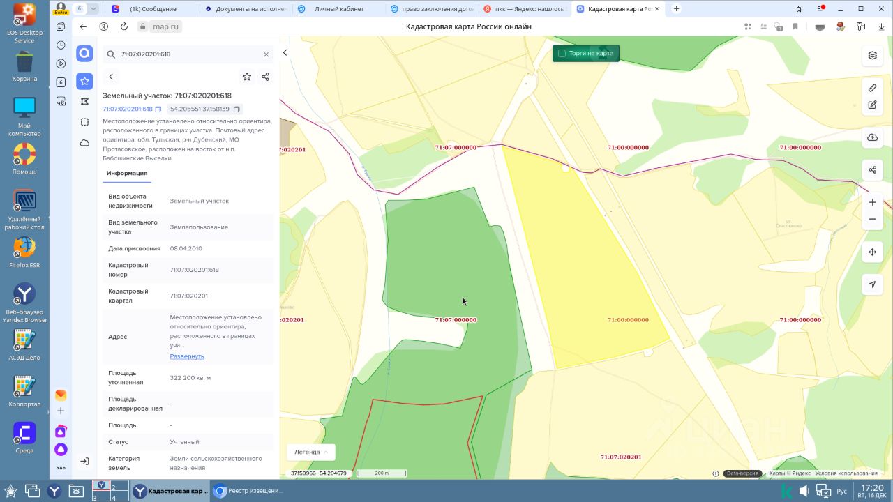 продажа земельного участка из земель сельскохозяйственного назначения с кадастровым номером 71:07:020201:618 площадь: 322200 кв. м, местоположение земельного участка: местоположение установлено относительно ориентира, расположенного в границах участка. Почтовый адрес ориентира: обл. Тульская, р-н Дубенский, МО Протасовское, расположен на восток от н.п. Бабошинские Выселки, вид разрешенного использования: для сельскохозяйственного использования.