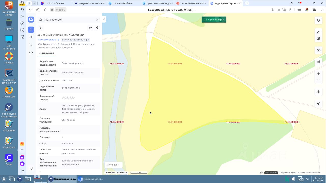 продажа земельного участка из земель сельскохозяйственного назначения с кадастровым номером 71:07:030101:294 площадь: 75419 кв. м, местоположение земельного участка: обл. Тульская, р-н Дубенский, 1100 м юго-восточнее, южнее, юго-западнее д. Морево, вид разрешенного использования: для сельскохозяйственного использования.