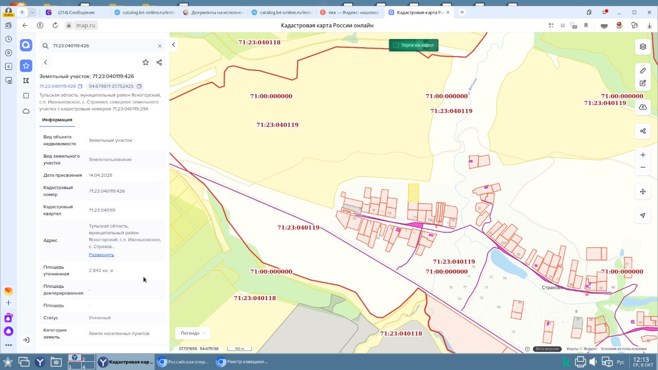 продажа земельного участка из земель населенных пунктов с кадастровым номером 71:23:040119:426, площадь 2842 кв. м, адрес: Тульская область, муниципальный район Ясногорский, с.п. Иваньковское, с. Страхово, севернее земельного участка с кадастровым номером 71:23:040119:294, вид разрешенного использования: для ведения личного подсобного хозяйства.