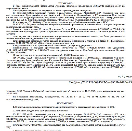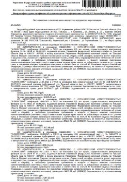 Здание, нежилое, наименование: контора, площадь 644,3 кв.м., кадастровый номер 71:12:080501:1056, адрес: Тульская обл, р-н. Киреевский, г. Болохово, ул. Первомайская, д. 13. • Земельный участок, категория земель: земли населенных пунктов, виды разрешенного использования: для производственной деятельности, площадь 662 +/- 0.4 кв.м., кадастровый номер 71:12:080501:337, адрес: обл. Тульская, р-н Киреевский, г. Болохово, ул. Первомайская, дом 13. В пределах земельного участка также расположен объект недвижимости с кадастровым номером 71:12:080503:2991, сведениями о правообладателе Организатор торгов не располагает. Ограничения прав на земельный участок, предусмотренные ст. 56 ЗК РФ. Взыскатель: УФНС по Тульской обл., АО "ТНС энерго Тула" и др.Начальная цена: 3 797 035 (Три миллиона семьсот девяносто семь тысяч тридцать пять) руб. 00 коп., без НДС. Задаток: 1 800 000 (Один миллион восемьсот тысяч) руб. 00 коп.; Шаг аукциона 1%: 37 970 (Тридцать семь тысяч девятьсот семьдесят) руб. 35 коп.