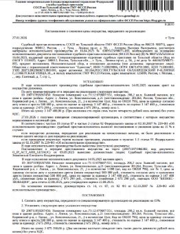 Здание, назначение: нежилое, наименование: нежилое здание, кадастровый номер 71:12:070607:551, площадь 206,2 кв.м., местоположение: Тульская область, р-н Киреевский, г Липки, ул Комсомольская, д 21. Бывший магазин, все окна в здании разбиты. Здание расположено в пределах земельного участка с кадастровым номером 71:12:060501:129, сведениями о правообладателе Организатор торгов не располагает, согласно выписке ЕГРН от 06.10.2025 г. граница земельного участка не установлена в соответствии с требованиями земельного законодательства. Взыскатель: ГМУ ФССП России. Начальная цена: 2 675 290 (Два миллиона шестьсот семьдесят пять тысяч двести девяносто) руб. 00 коп., без НДС. Задаток: 1 300 000 (Один миллион триста тысяч) руб. 00 коп.; Шаг аукциона 1%: 26 752 (Двадцать шесть тысяч семьсот пятьдесят два) руб. 90 коп.