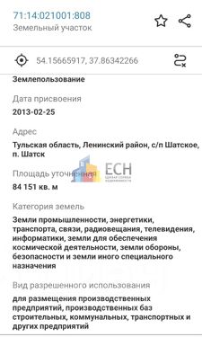 10 км от Тулы. Зона П-1. Земли промышленности, энергетики, транспорта, связи, радиовещания, телевидения, информатики, земли для обеспечения космической деятельности, земли обороны, безопасности и земли специального назначения.