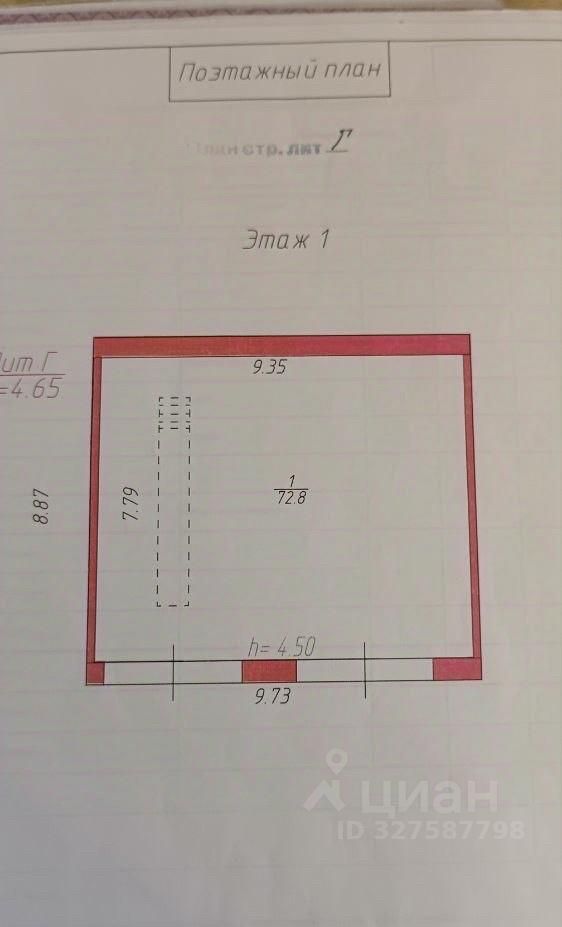 Фундамент литой, стены кирпичные, перекрытия железобетонные, 2 ворот, 1 смотровая яма. Объем 401 куб.м. Площадь 72.8 м. Размеры 8.879.73, высота 4.65 м. Территория охраняемая общая.