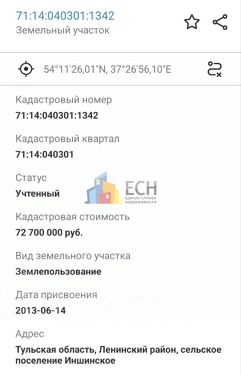 Кадастровый номер 71:14:040301:1342.