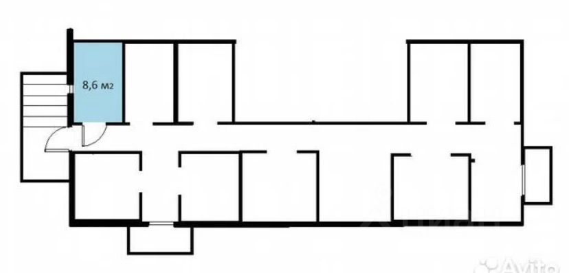 8.6 м2 , ширина 2 м., длина 4,3 м.