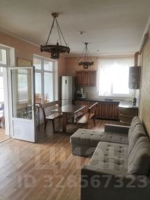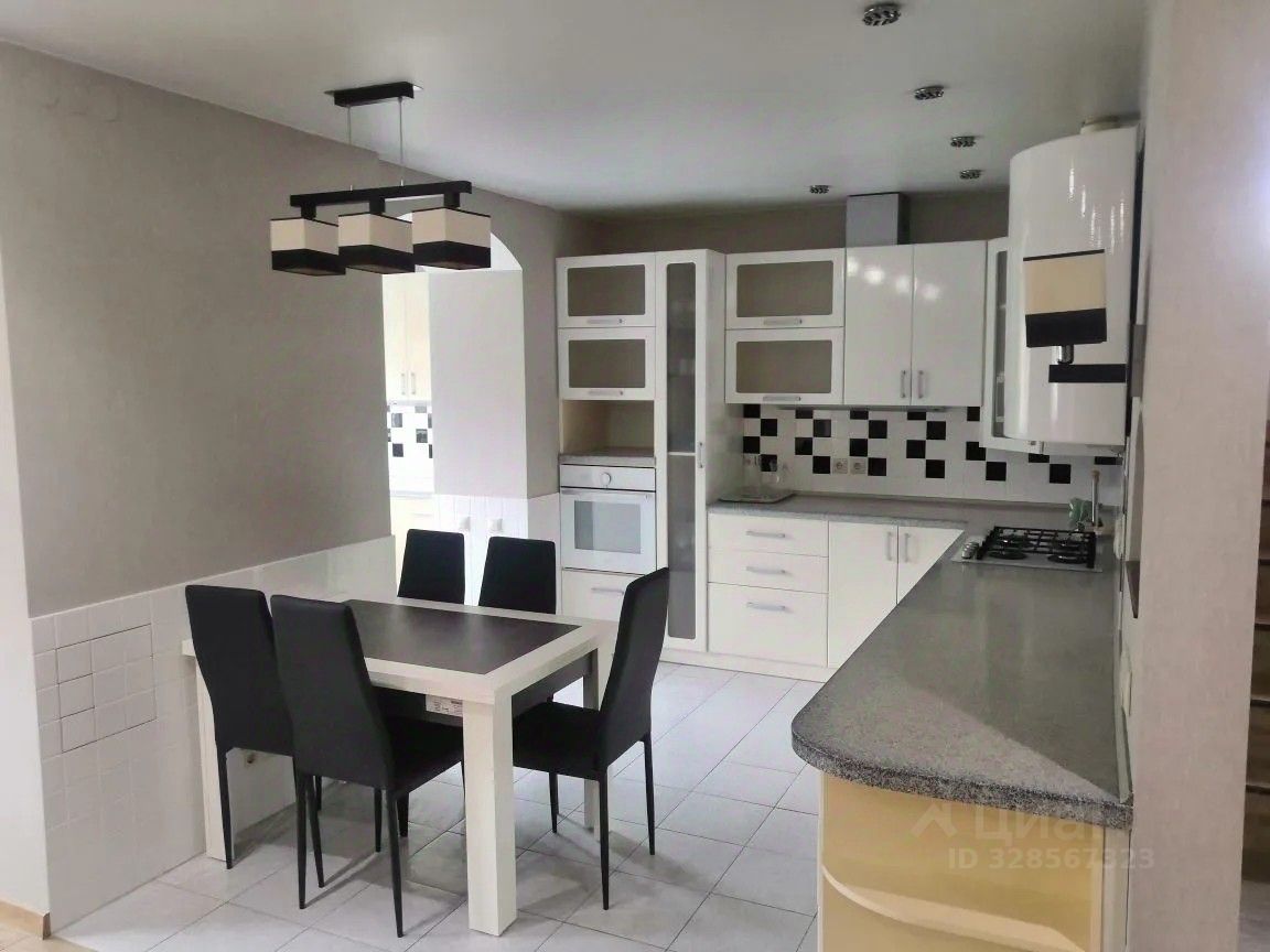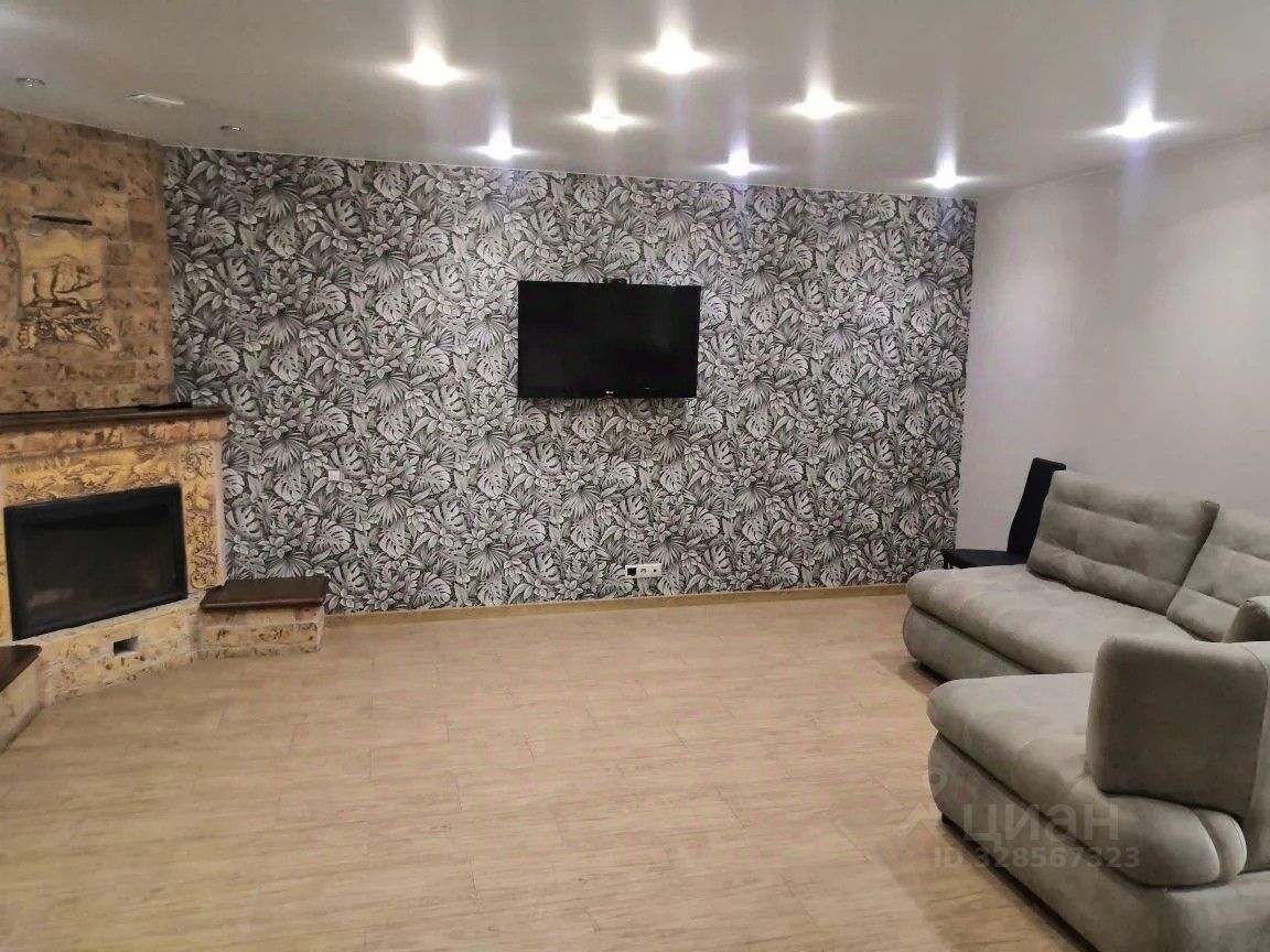 На первом этаже: Кухня-столовая, оборудованная гарнитуром и необходимыми мебелью и техникой, переходит в уютную гостиную с дровяным камином, диваном и телавизором. Сауна на дровах с бассейном. Просторное помещение свободного назначения со столом для настольного тенниса.