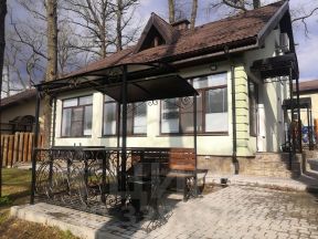 - Шесть гостевых 2-этажных домиков (площадь 150 кв.м каждый). В трех домиках выполнен ремонт, установлены кондиционеры, полностью оборудованы и мебелированы кухня и комнаты. В каждом доме имеется остекленная веранда, сауна с электрической печью-каменкой. На огороженной территории расположены беседка с мангалом.