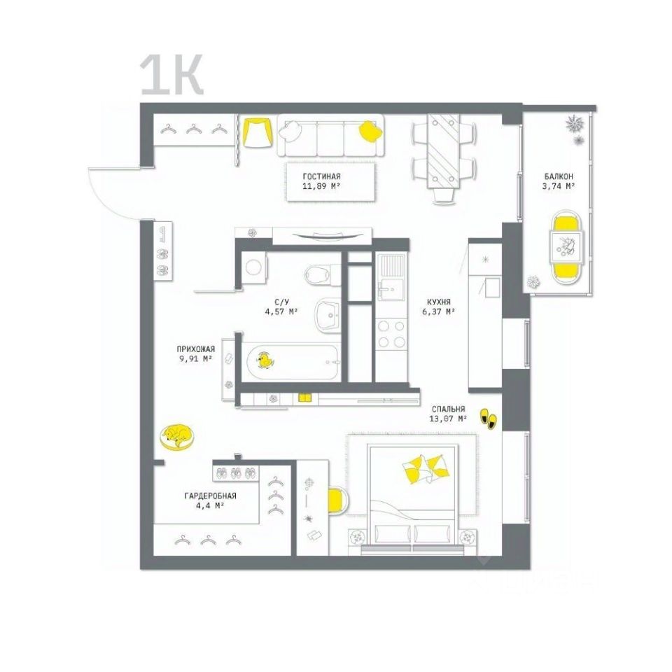 1-комнатная квартира в Smart-квартале Современник.