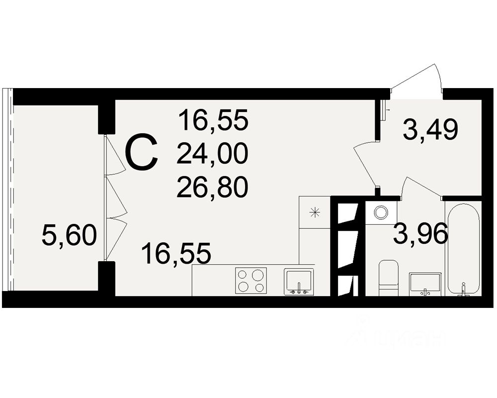 Общая площадь26,8 м²