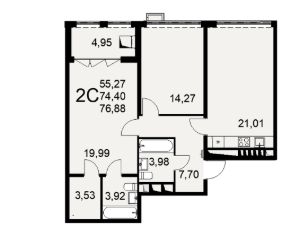 Продается 2-комн. квартира, 76,88 м²