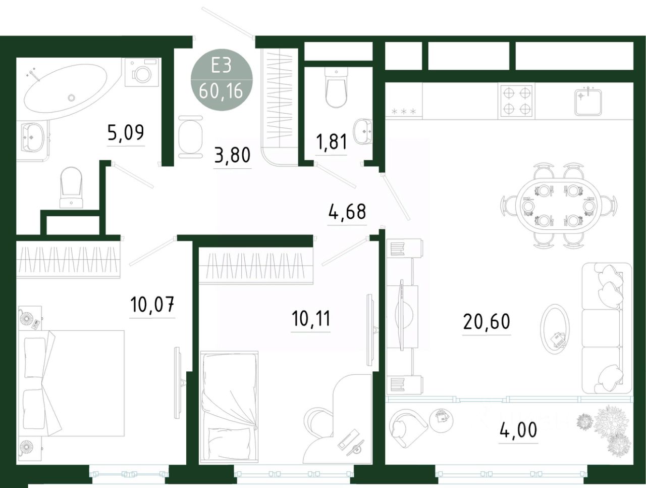 Продаётся 2-комнатная квартира в строящемся доме (Позиция 2), срок сдачи: III-кв. 2029, общей площадью 60.6 кв.м., на 11 этаже. Новый жилой комплекс в г. Тула "Платон Парк" от застройщика ООО "СЗ "МОНОЛИТ""