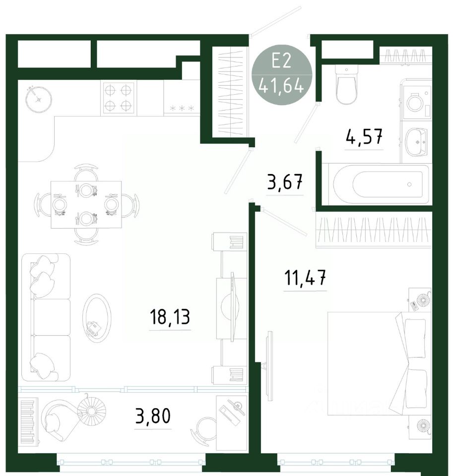 Продаётся 1-комнатная квартира в строящемся доме (Позиция 2), срок сдачи: III-кв. 2029, общей площадью 42.15 кв.м., на 13 этаже. Новый жилой комплекс в г. Тула "Платон Парк" от застройщика ООО "СЗ "МОНОЛИТ""