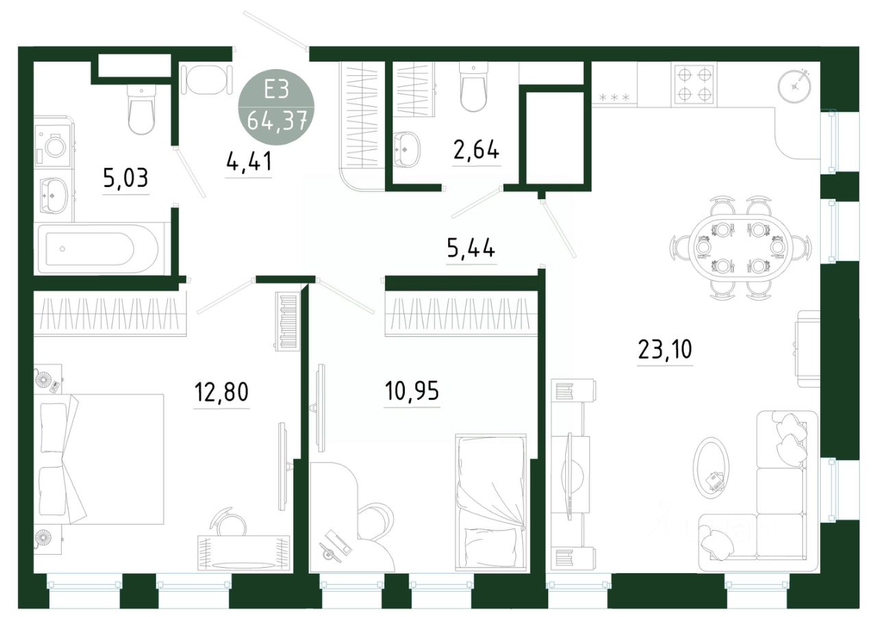 Продаётся 2-комнатная квартира в строящемся доме (Позиция 2), срок сдачи: III-кв. 2029, общей площадью 64.24 кв.м., на 5 этаже. Новый жилой комплекс в г. Тула "Платон Парк" от застройщика ООО "СЗ "МОНОЛИТ""