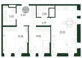 Продаётся 2-комнатная квартира в строящемся доме (Позиция 2), срок сдачи: III-кв. 2029, общей площадью 64.24 кв.м., на 1 этаже. Новый жилой комплекс в г. Тула "Платон Парк" от застройщика ООО "СЗ "МОНОЛИТ""