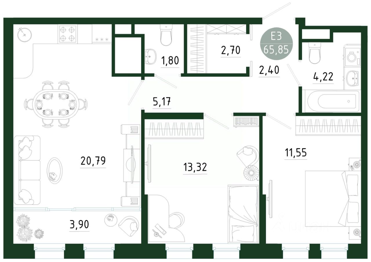 Продаётся 2-комнатная квартира в строящемся доме (Позиция 2), срок сдачи: III-кв. 2029, общей площадью 65.76 кв.м., на 2 этаже. Новый жилой комплекс в г. Тула "Платон Парк" от застройщика ООО "СЗ "МОНОЛИТ""