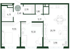 Продаётся 2-комнатная квартира в строящемся доме (Позиция 1), срок сдачи: III-кв. 2029, общей площадью 65.85 кв.м., на 25 этаже. Новый жилой комплекс в г. Тула "Платон Парк" от застройщика ООО "СЗ "МОНОЛИТ""