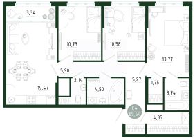 Продаётся 3-комнатная квартира в строящемся доме (Позиция 1), срок сдачи: III-кв. 2029, общей площадью 85.59 кв.м., на 17 этаже. Новый жилой комплекс в г. Тула "Платон Парк" от застройщика ООО "СЗ "МОНОЛИТ""