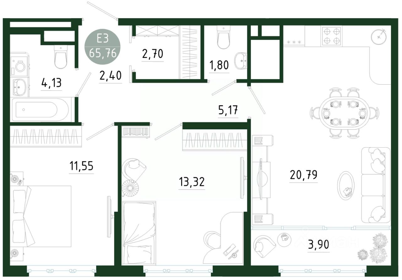 Продаётся 2-комнатная квартира в строящемся доме (Позиция 1), срок сдачи: III-кв. 2029, общей площадью 65.85 кв.м., на 18 этаже. Новый жилой комплекс в г. Тула "Платон Парк" от застройщика ООО "СЗ "МОНОЛИТ""