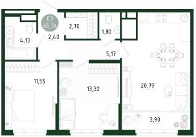 Продаётся 2-комнатная квартира в строящемся доме (Позиция 1), срок сдачи: III-кв. 2029, общей площадью 65.85 кв.м., на 19 этаже. Новый жилой комплекс в г. Тула "Платон Парк" от застройщика ООО "СЗ "МОНОЛИТ""