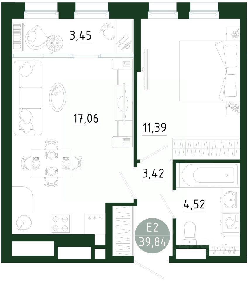 Продаётся 1-комнатная квартира в строящемся доме (Позиция 1), срок сдачи: III-кв. 2029, общей площадью 39.75 кв.м., на 1 этаже. Новый жилой комплекс в г. Тула "Платон Парк" от застройщика ООО "СЗ "МОНОЛИТ""