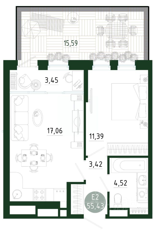 Продаётся 2-комнатная квартира в строящемся доме (Позиция 1), срок сдачи: III-кв. 2029, общей площадью 55.43 кв.м., на 1 этаже. Новый жилой комплекс в г. Тула "Платон Парк" от застройщика ООО "СЗ "МОНОЛИТ""