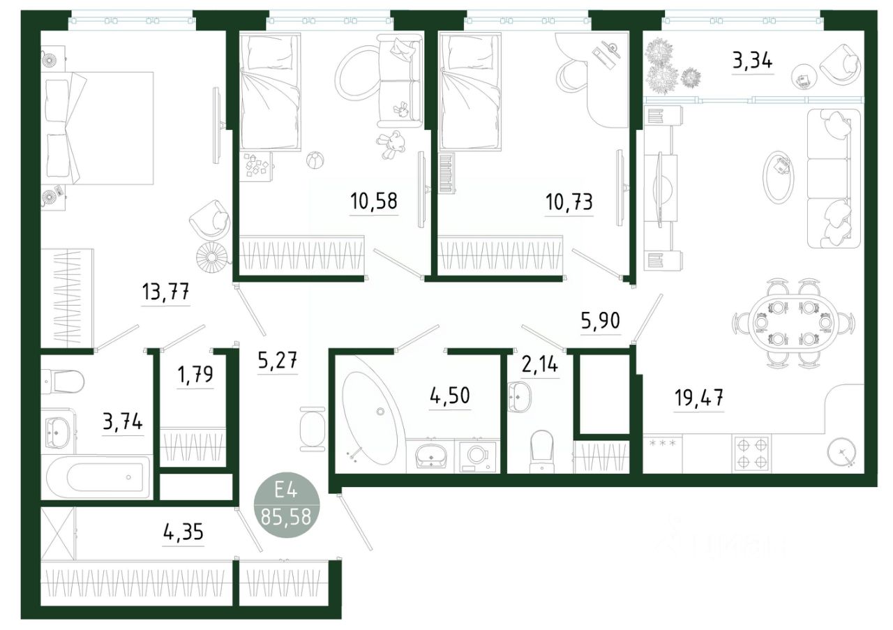 Продаётся 3-комнатная квартира в строящемся доме (Позиция 2), срок сдачи: III-кв. 2029, общей площадью 85.59 кв.м., на 22 этаже. Новый жилой комплекс в г. Тула "Платон Парк" от застройщика ООО "СЗ "МОНОЛИТ""
