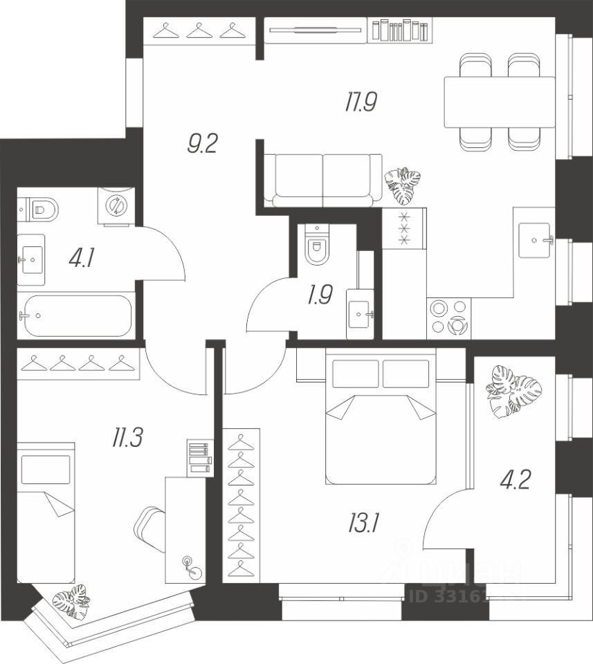 Общая площадь61,7 м²