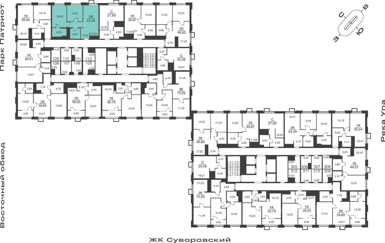 Общая площадь54,35 м²