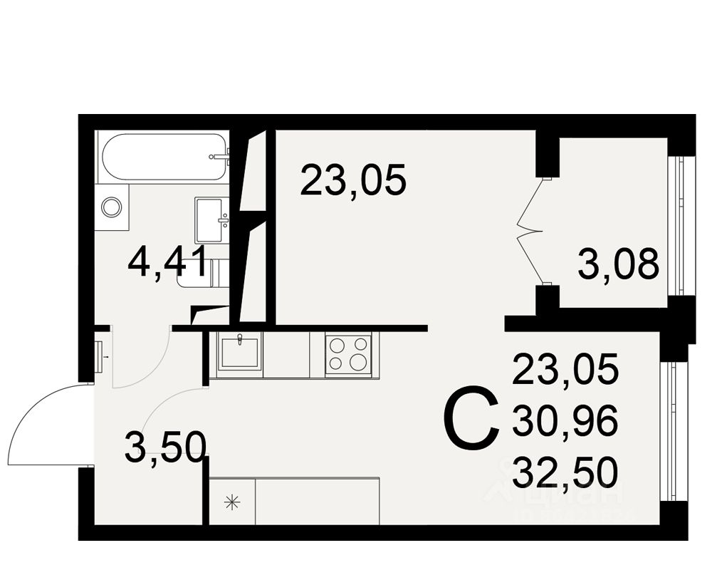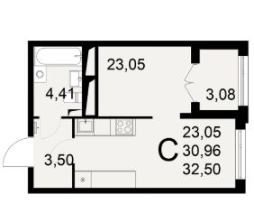 Общая площадь32,5 м²
