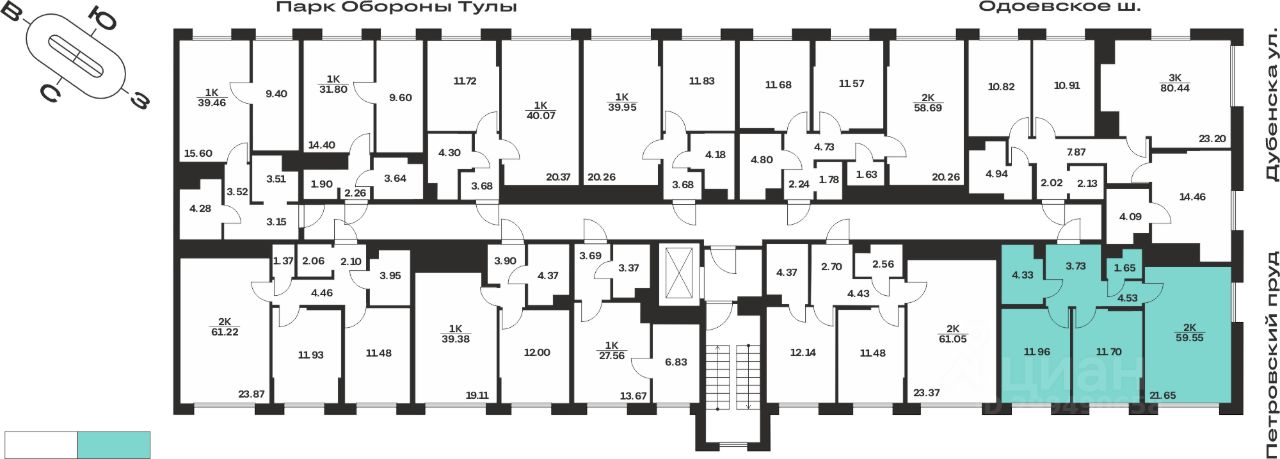 Общая площадь59,55 м²