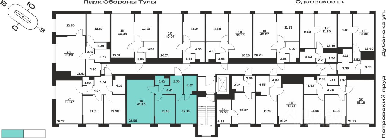 Общая площадь61,1 м²